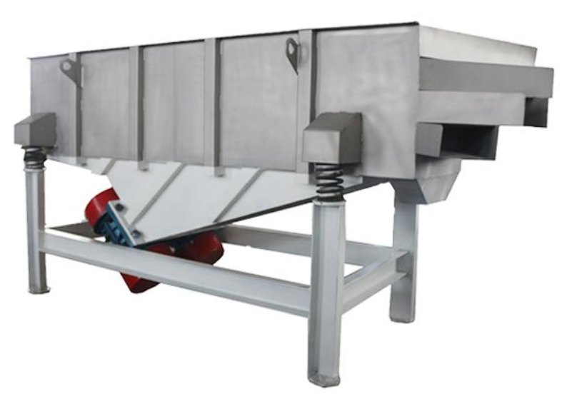 La criba vibratoria rectangular utiliza un motor vibratorio como fuente de vibración. Dos motores de vibración funcionan simultáneamente (la vibración se desarrolla en los planos horizontal y vertical). El diseño del motor vibratorio permite ajustar fácilmente el contrapeso y modificar la vibración para encontrar la mejor manera de tamizar el producto. Alta precisión de tamizado y gran capacidad de procesamiento. Estructura completamente cerrada, sin polvo proyectado. Bolas de rebote ubicadas debajo de la criba, que eliminan el bloqueo de la malla, aumentando la precisión del tamizado y reduciendo el consumo de energía. Excelentes placas de acero, con buena rigidez general, firmeza y fiabilidad a largo plazo. Tipos de criba vibratoria: Cribas vibratorias inclinadas, cribas vibratorias de movimiento, cribas vibratorias horizontales, cribas vibratorias de deshidratación, cribas vibratorias lineales. El separador está disponible en acero al carbono, acero inoxidable 304 o acero inoxidable 316.